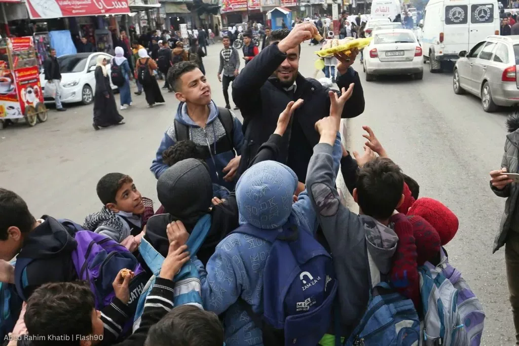 Gazan children enjoy sweet treats being handed out in the streets after successful terrorist attack in Israel