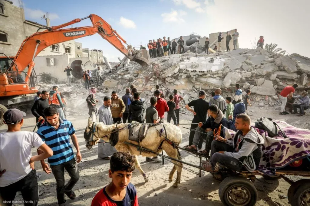 Gazans sift through rubble after IDF bombs buildings in search of Hamas’ tunnel networks. The tunnels, which allow underground mobility, double as bomb shelters but are only accessible to terrorists.