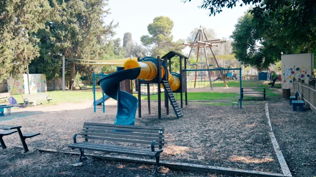 This play ground in southern Israel was built with two bomb shelters at both ends to provide safety for families caught outside when a siren sounds