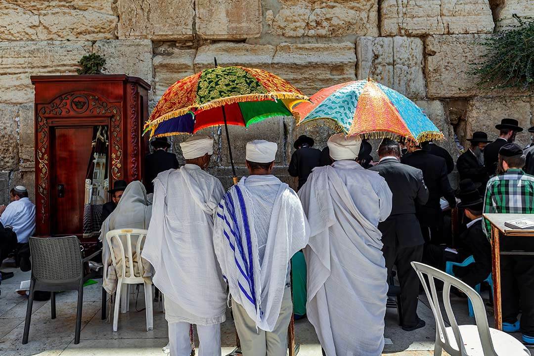 At the Western Wall: The older generation of Ethiopians who immigrated to Israel proudly display their ancient styles and traditions.