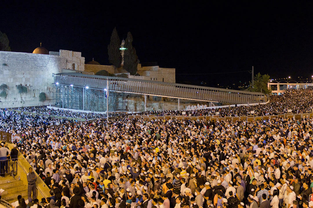 Le point culminant des « Jours redoutables » est Yom Kippour, le Jour du Grand Pardon. Il commence au coucher du soleil. Les rues sont dégagées et les gens vêtus de blanc commencent à affluer, beaucoup se rendant à la synagogue pour réciter les prières traditionnelles de pardon. Des milliers de personnes se rendent au Mur occidental pendant des heures pour prier et demander à Dieu de leur pardonner, personnellement et collectivement, en tant que nation. Pour le documentaire, nous avons été autorisés à filmer ces prières depuis le pont jusqu'au Mont du Temple. Il y avait environ 100 000 personnes ce soir-là ! J'avais un point de vue exceptionnel, observant cette foule immense venue dans un seul but : se repentir.